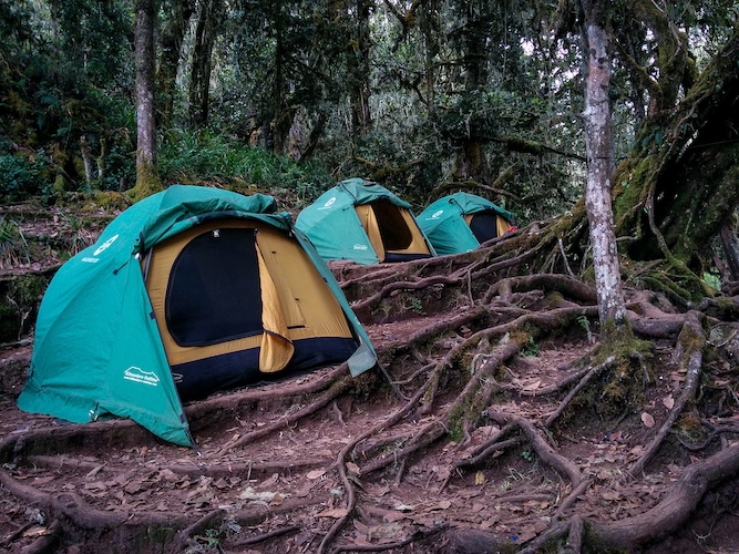 After a transfer to Umbwe Gate, complete registration and begin your trek through dense rainforest, with tall trees, vibrant ferns, and the occasional sighting of colobus monkeys. The trail ascends steeply up the ridge, offering your first taste of Kilimanjaro’s rugged terrain and panoramic views of the surrounding valleys. Arrive at Umbwe Camp, where you can relax and enjoy the forested environment, preparing for the more challenging climbs ahead.